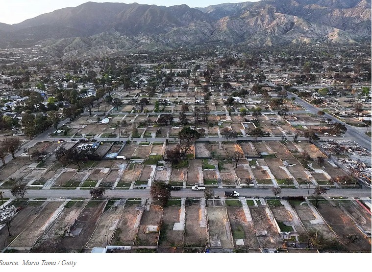 The idyllic foothill community was hardest hit by the Eaton Fire, which destroyed over 9,000 structures—including homes and businesses—in and around Altadena. According to UCLA researchers, Altadena’s Black residents were disproportionately impacted by the Eaton Fire, with nearly half of Black households in Altadena destroyed or badly damaged by the fire.