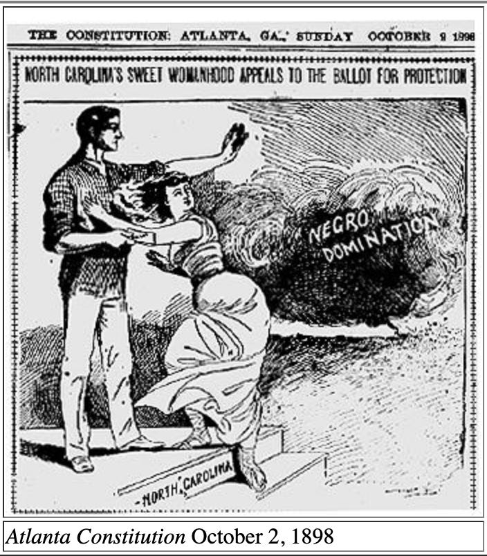Now that Black people are free, now that they can vote, now that they can sit in state legislatures and own land and walk without chains, they’re gonna get revenge against white folks. White politicians and newspapers across the South began warning of so-called “Negro domination.” The claim explicitly said that if formerly enslaved people had political power, they would rape white women, seize and burn property, murder former masters, and turn the South into a Black-run hellscape.